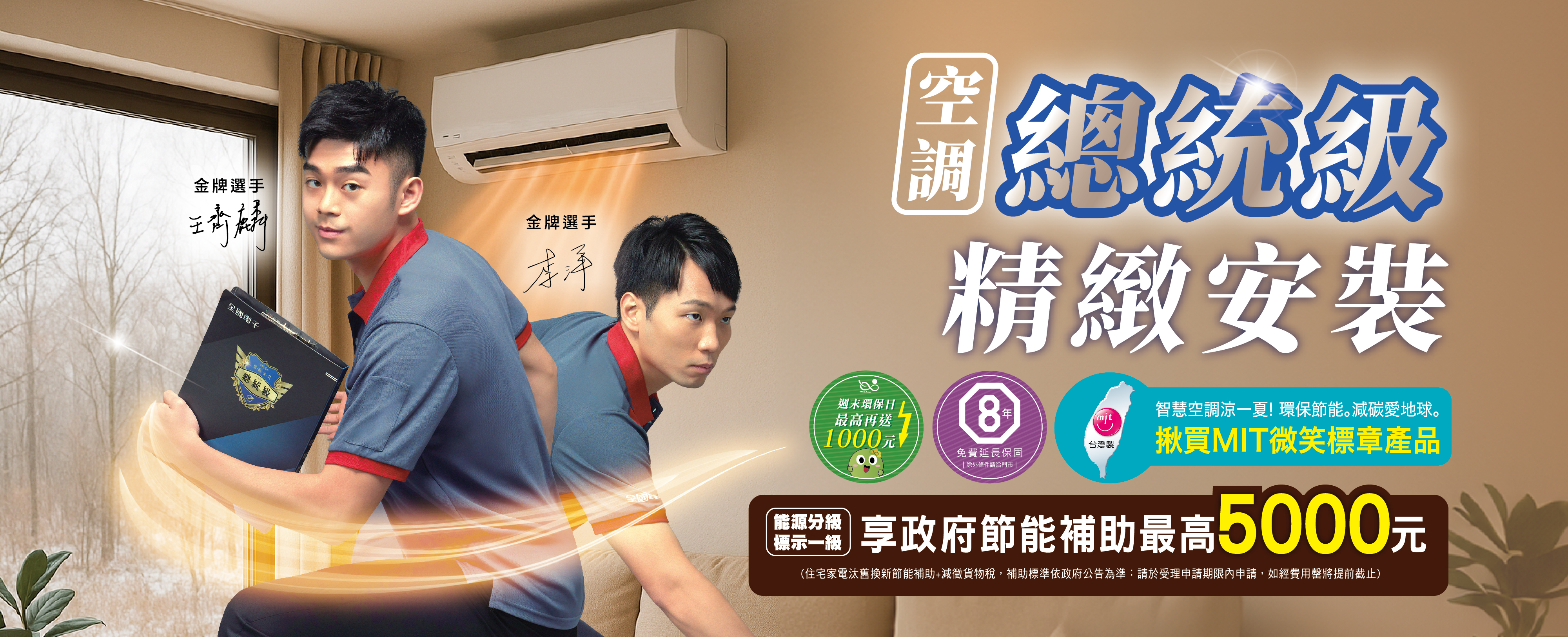 自114年1月1日至114年12月31日,全國電子有效會員在全國電子購買空調享有8年免費延長保固,揪感心!