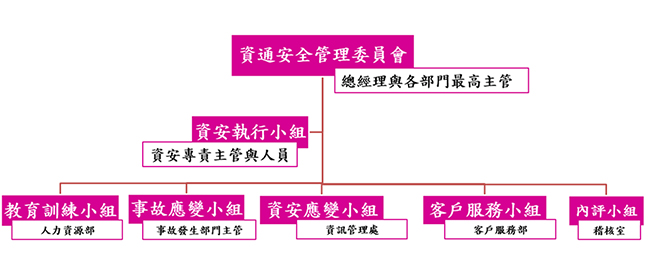個人資料管理委員會係本公司個資管理最高決策機構,並由執行小組協同各單位及各任務小組共同推動本公司個資保護管理系統之執行。