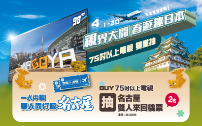 115/4/1-4/30 視界大開 春遊趣日本 抽名古屋雙人來回機票