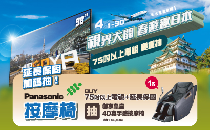 115/4/1-4/30 視界大開 春遊趣日本 抽 Panasonic 按摩椅